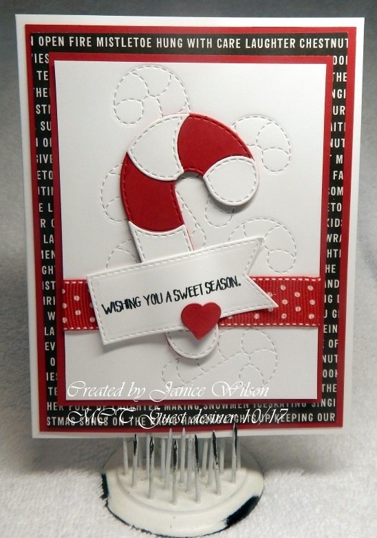 Good morning friends. Welcome to the 72nd Edition Sneak Peek day 1. Today we are showcasing the Sweet Candy Cane Die and the Stitched Candy Cane Background. Here is my card.